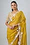 Featuring a mustard yellow saree in organza base with resham work. It is paired with a silk blouse having resham work. Accentuate it with statement earrings and heels for weddings or haldi ceremonies.
