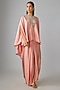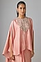 Featuring a peach kaftan in silk base with gota work. It is paired with a modal satin skirt. Accentuate it with stud earrings and heels for festive wear, daytime celebrations or wedding ceremonies.