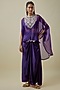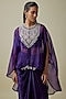 Featuring a purple umbrella kaftan in organza base with resham work. It is paired with a cotton lycra bustier and a modal satin skirt. Accentuate it with statement earrings and metallic heels for cocktail parties, festive dinners, or elegant evening events.