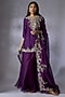 Featuring a purple kurta in silk base with zari embroidery. It is paired with organza sharara pants and a dupatta. Perfect wear for festive or wedding ceremony.