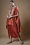 Featuring a red kaftan in silk base with dori embroidery. It is paired with a crepe skirt. Accessorize this designer skirt set with a pair of dangler earrings and heels for an Indo-western look.