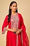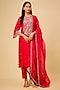 Featuring a red kurta in silk base with maal work. It is paired with cotton satin pants and an organza dupatta. Accentuate it with minimal jewellery and heels for a festive look.