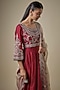 Featuring a red anarkali in silk base with resham and maal work. It is paired with cotton satin pants and a tissue dupatta. Accentuate it with minimal jewellery and heels for weddings or festive ceremonies.