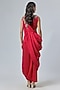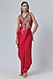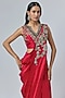 Red Silk Thread Embroidered Draped Skirt Saree Set