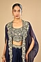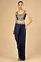 Featuring a royal blue cape in dupion silk base. It is paired with a blouse and a skirt. Accentuate with statement jewellery and heels for festive occasions or wedding ceremonies.