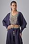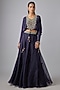 Featuring a royal blue blouse in silk base with thread work. It is paired with an organza skirt. Accentuate it with dangler earrings and heels for festive wear, sangeet or wedding ceremonies.