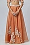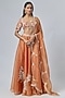 Featuring a rust lehenga in silk and organza base with resham and moti embroidery. It is paired with an embroidered blouse and an organza dupatta. Accentuate it with kundan polki dangler earrings, a floral hairdo, block heels and an embellished potli bag for a wedding, sangeet or engagement ceremonies.