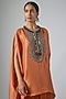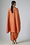 Featuring a rust kaftan in silk base with dori and thread embroidery. It is paired with a modal satin skirt. Accentuate it with kundan polki jewellery and block heels for festive occasion, pooja or family gatherings.
