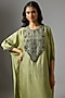 Featuring a sea green kaftan in crushed tissue base. It is paired with cotton lycra pants and a cotton satin inner. Accentuate it with gold earrings and embroidered juttis for a stylish ensemble, ideal for festive celebrations, family functions or evening gatherings.
