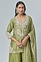 Featuring a sea green kurta in silk base with resham and moti embroidery. It is paired with organza sharara pants and a weave organza dupatta. Accentuate it with polki stud earrings, mules and an embellished potli bag for festive celebrations, sangeet, mehendi or family gatherings.