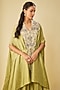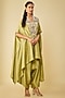 Featuring a sea green kaftan in silk base with resham and maal work. It is paired with cotton satin pants. Accentuate it with statement earrings and heels for festive occasions.