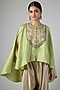 Featuring a sea green kaftan in silk base with resham work. It is paired with cotton satin pants. Style it with heels, dangler earrings and ponytail for a classy look. Ideal for a festive occasion or sangeet ceremony.