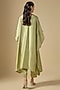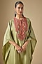 Featuring a sea green kurta in silk base with thread work. It is paired with cotton satin pants. Accentuate it with polki earrings and block heels for a festive occasion, sangeet or mehendi ceremony.