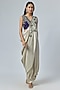 Smoke Grey Silk Thread Embroidered Draped Skirt Saree Set