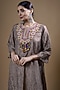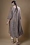 Featuring a mauve top in silk bandhej base with dori embroidery. It is paired with white cotton satin asymmetric pants. Accessorize this set with a pair of dangler earrings and heels for an Indo-western look.