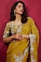 Featuring a yellow saree in organza base with dori work. It is paired with a silk blouse having dori work. Accentuate it with statement earrings and heels for a festive occasion, engagement or haldi ceremony.