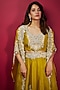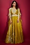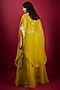 Featuring a yellow blouse in silk base with maal and resham work. It is paired with a kalidar skirt and an organza cape. Style it with statement earring and heels for a complete look for any festive occasion or haldi ceremonies.