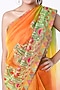 Featuring an orange and light yellow handloom saree in sheer silk base with thread and aari embroidery. It is paired with a matching paisley blouse.