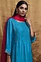Featuring a turquoise kurta in silk base with zardosi embroidery. It is paired with matching pants in mashru base and an organza dupatta.
