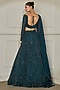 Featuring an emerald green lehenga in soft net base with beads, sequins and cutdana hand embroidery. It is paired with a soft net hand embroidered blouse and an organza silk dupatta. Accentuate it with statement jewellery and heels for an elegant look, Perfect for a festive occasion or wedding ceremony.