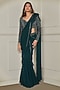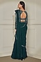 Forest Green Georgette & Organza Silk Sequins Hand Embroidered Ruffled Saree Set