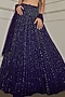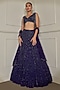 Featuring an indigo lehenga in net base with pearl, sequins, cutdana and crystal linear embroidery. It is paired with a blouse and a dupatta. Accentuate it with statement jewellery and heels for an elegant look, Perfect for a festive occasion or wedding ceremony.
