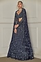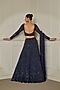 Featuring a midnight blue lehenga in net base with crystal, sequins, pearls and cutdana embroidery. It is paired with a blouse and a dupatta. Accentuate it with statement jewellery and heels for an elegant look, Perfect for a festive occasion or wedding ceremony.