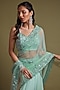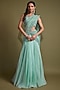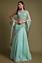 Mint Organza Sequins Embroidered Draped Lehenga Saree Set