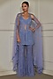 Featuring a periwinkle kurta in net base with crystal, sequins, cutdana and pearls hand embroidery. It is paired with palazzo pants and a scalloped dupatta. Accentuate it with statement jewellery and heels for an elegant look, Perfect for a festive occasion or wedding ceremony.