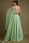Featuring a pista green lehenga in organza silk base with beads, sequins, cutdana and thread hand embroidery. It is paired with a soft net embroidered corset blouse and dupatta. Elevate your look with statement jewellery and chic heels for a wedding, mehendi, sangeet or engagement ceremony.