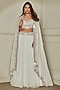Featuring a white lehenga in organza silk base with mirror, thread, sequins, pearls and cutdana embroidery. It is paired with a blouse and a dupatta. Accentuate it with statement jewellery and heels for an elegant look, Perfect for a festive occasion or wedding ceremony.