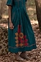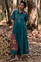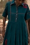 Featuring an ink blue box pleated dress in muslin cotton base with kantha stitch and applique floral details. Accentuate it with statement earrings, block heels and a sling bag for an elegant evening vibe or everyday wear.