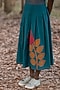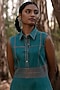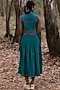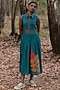 Featuring an ink blue flared dress in muslin cotton base with stitch lines, cinched waist and marigold applique details. Accentuate it with statement earrings, block heels and a sling bag for an elegant evening vibe or everyday wear.