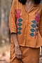 Featuring a mustard shirt in muslin cotton base with stitch line, marigold applique and button-up details. Accentuate it with pants, block heels and a sling bag for a casual or everyday wear.