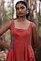 Featuring a pink dress in viscose cotton base with stitch line and marigold applique details. Accentuate it with statement earrings, block heels and a sling bag for an elegant evening vibe or everyday wear.