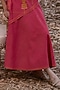 Featuring a warm red flared dress in muslin cotton base with a slanted yoke, stitch line and marigold applique boota details. Accentuate it with statement earrings, block heels and a sling bag for an elegant evening vibe or everyday wear.