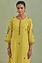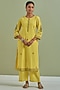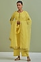 Featuring a yellow kurta in cotton base with hand and machine embroidery. It is paired with matching kota cotton pants and a dupatta.