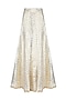 This set features an ivory high neck long kurta in chanderi base with gold lotus zari embroidery all over the back and sleeves. It is paired with an ivory flared skirt in chanderi silk base with gold and silver chevron stripes gota patti work all over.