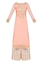 Peach Floral Embroidered Kurta and Sharara Pants Set