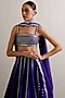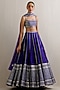 Featuring an ink blue lehenga in raw silk base with aari, sequins and zari hand embroidery. It is paired with an embroidered blouse and a net dupatta. Accessorize it with statement jewellery and heels for a wedding or an engagement ceremonies.