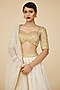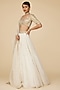 Featuring an ivory lehenga in organza base with sequin and beads aari work. It is paired with a poly silk blouse and a silk organza dupatta. Accentuate this designer lehenga with gold jewellery and heels for a wedding or an engagement ceremony.