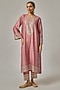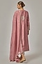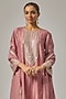 Featuring an onion pink kurta in chanderi base with geometric motifs and hand embroidery. It is paired with cotton pants and a viscose organza embroidered dupatta. Accentuate it with dangler earrings and heels for a festive occasion, intimate pooja ceremony or family gathering.
