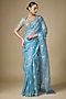 Pacific Blue Silk Organza Gota Patti Embroidered Saree Set