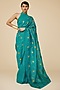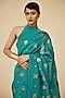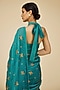 Teal Blue Silk Organza Aari Embroidered Saree Set