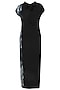 Featuring a black full length shirt maxi dress with neck tie and drop shoulders constructed in imported butter finish poly georgette fabric with cyclone organic print on one side.