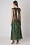 Featuring a gold sleeveless high-low flared cardigan in metallic stretch fabric. This contains only one piece.