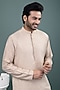 Featuring a beige kurta in cotton silk base with applique embroidery. It is paired with pyjama pants. Perfect attire for any festive occasion, exuding traditional charm and elegance.
