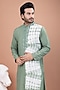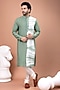Featuring an olive green tie-dye kurta in cotton silk base with mirror work. It is paired with pyjama pants. Perfect attire for any festive occasion, exuding traditional charm and elegance.