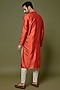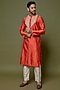 Featuring an orange kurta in katan silk base with applique embroidery. It is paired with churidar pants. Perfect attire for festive occasion, exuding traditional charm and elegance.