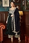 Featuring a bottle green anarkali in velvet base with aari and sequins embroidery. It is paired with embroidered midnight palazzo pants and a dupatta. Accentuate with statement earrings and heels for a festive occasion.